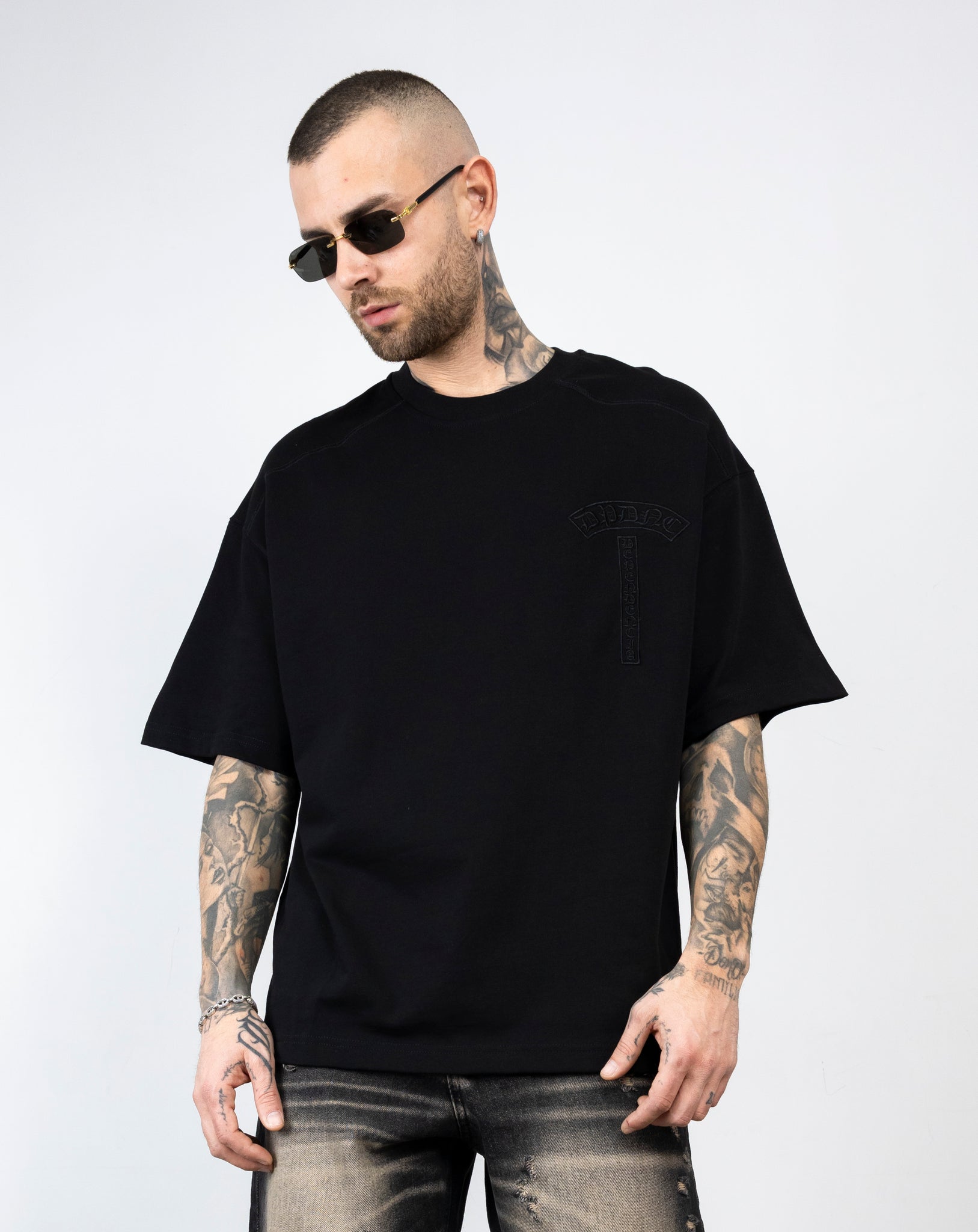 t-shirt mezza manica con stampa croce in petto colore su colore