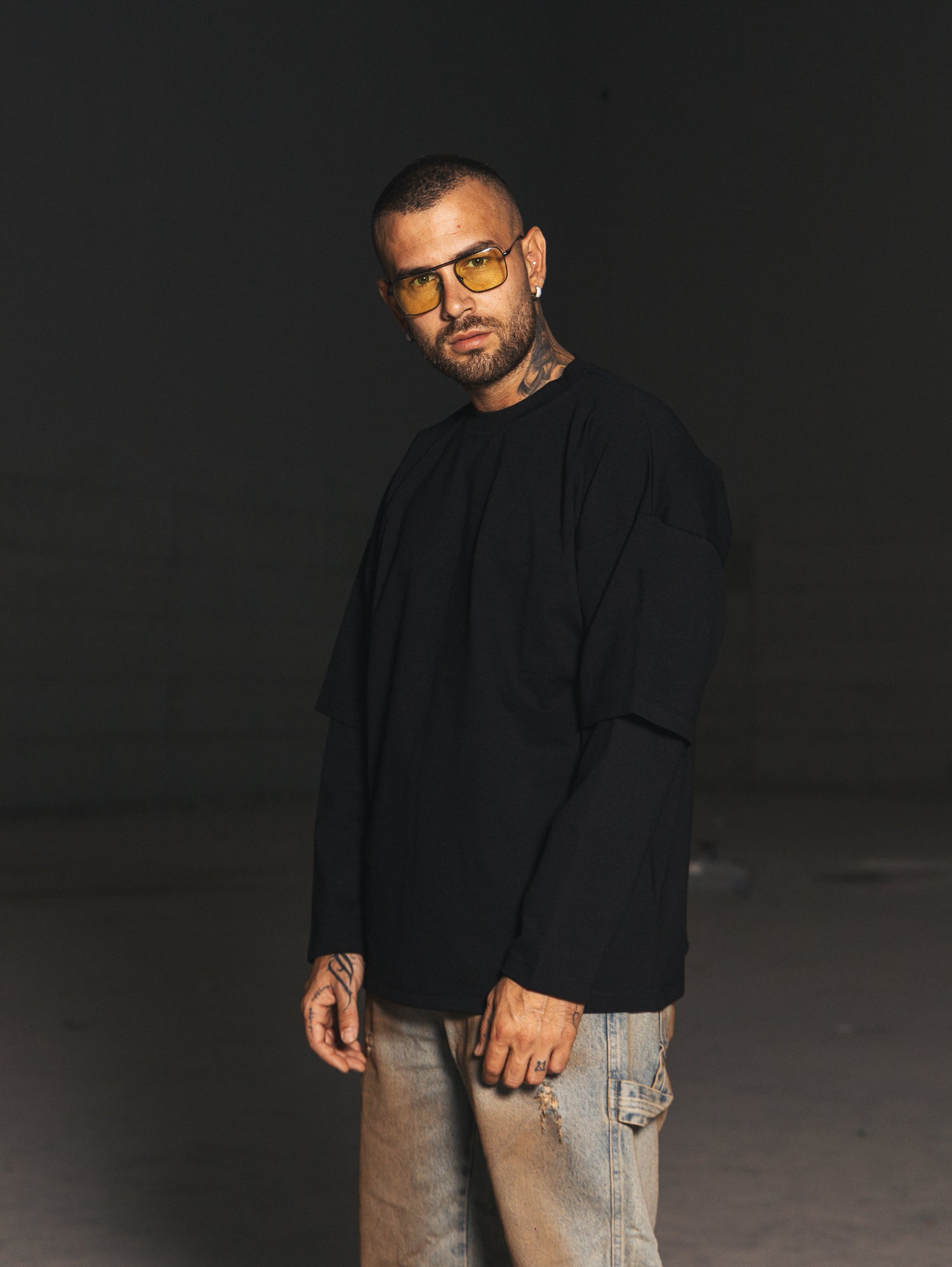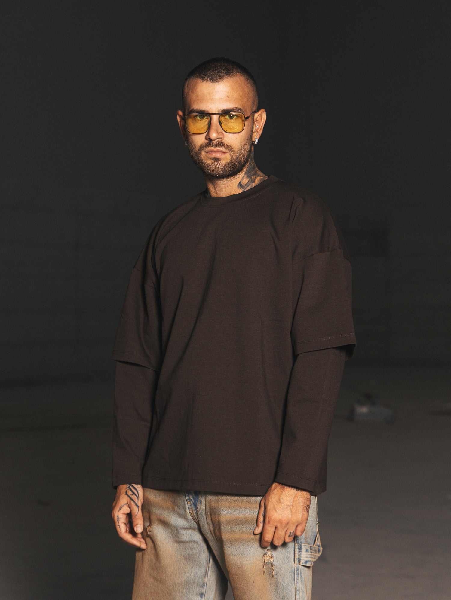 t-shirt doppia manica,colore su colore.