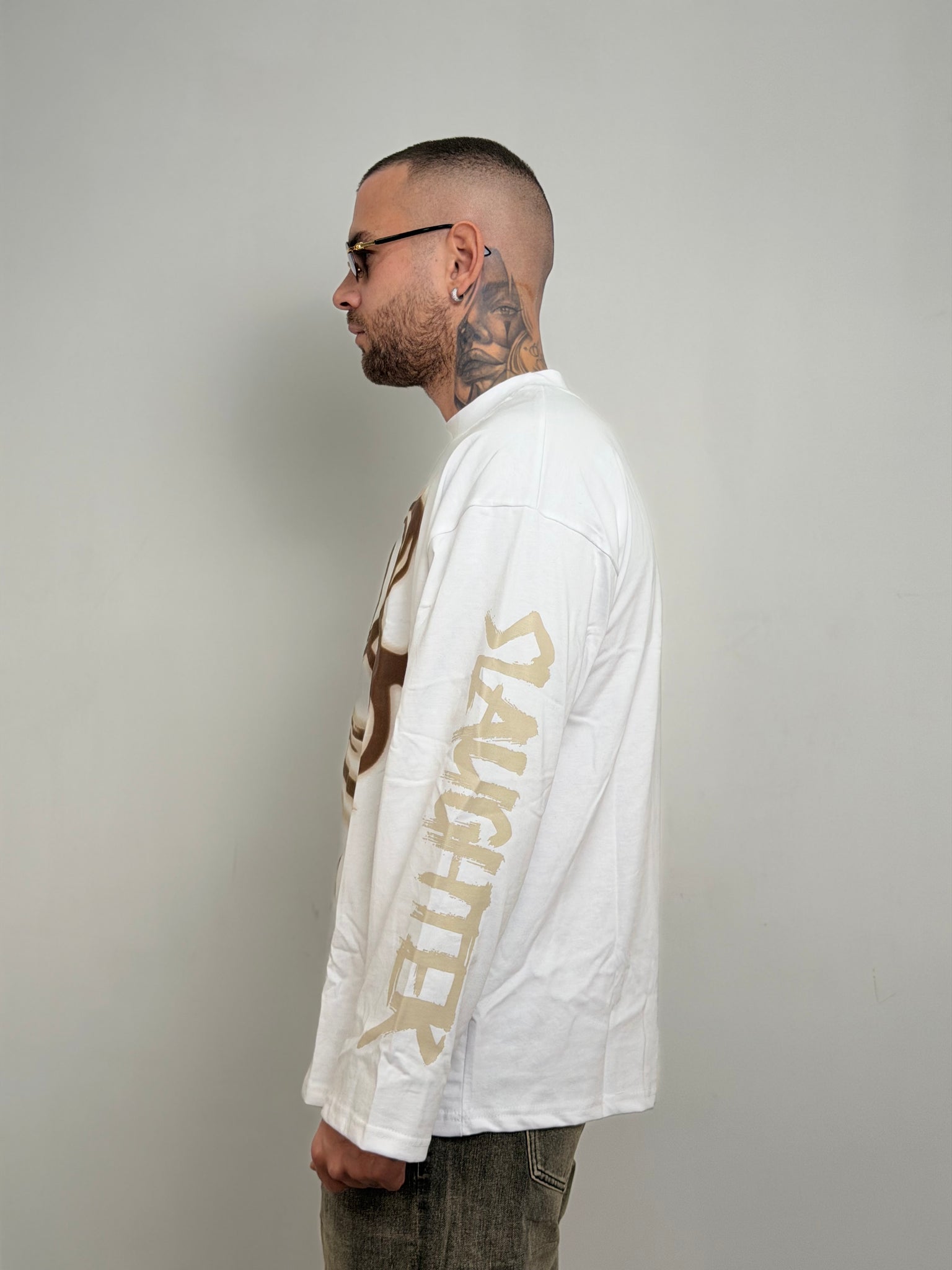 t-shirt manica lunga over size,con stampa a contrasto lungo la manica e frontale