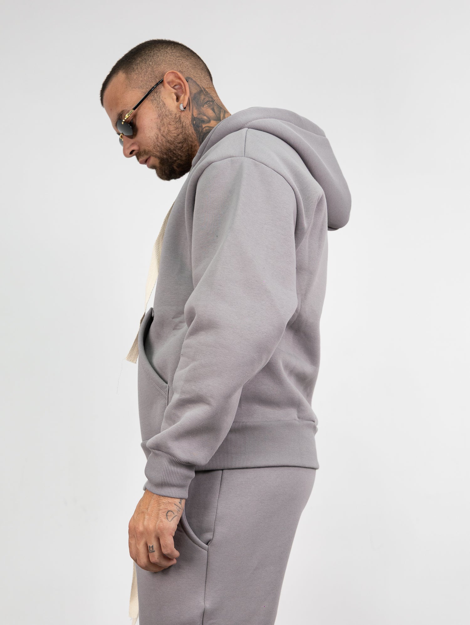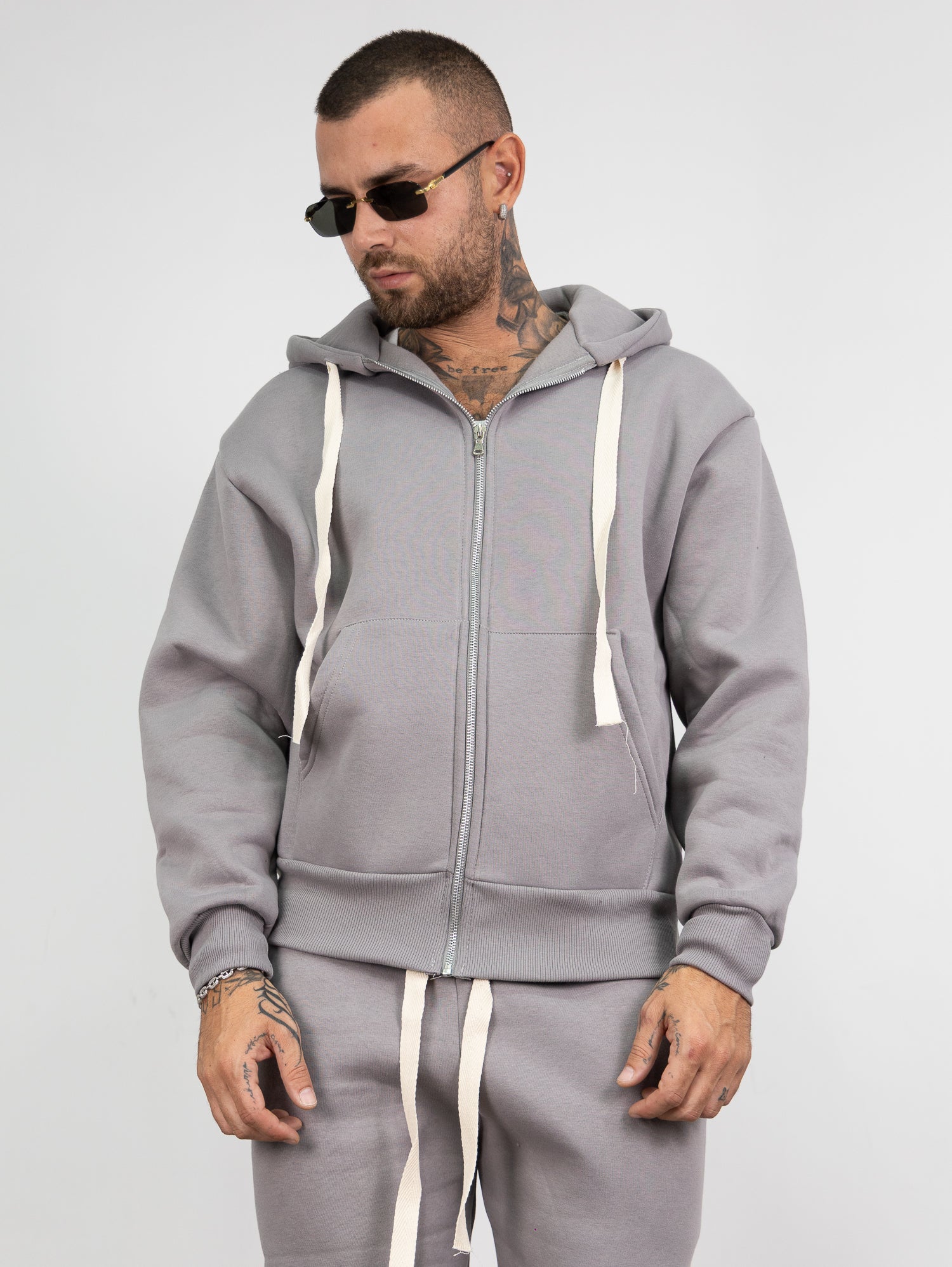 Felpa con cappuccio,zip apribile e laccio frontale.