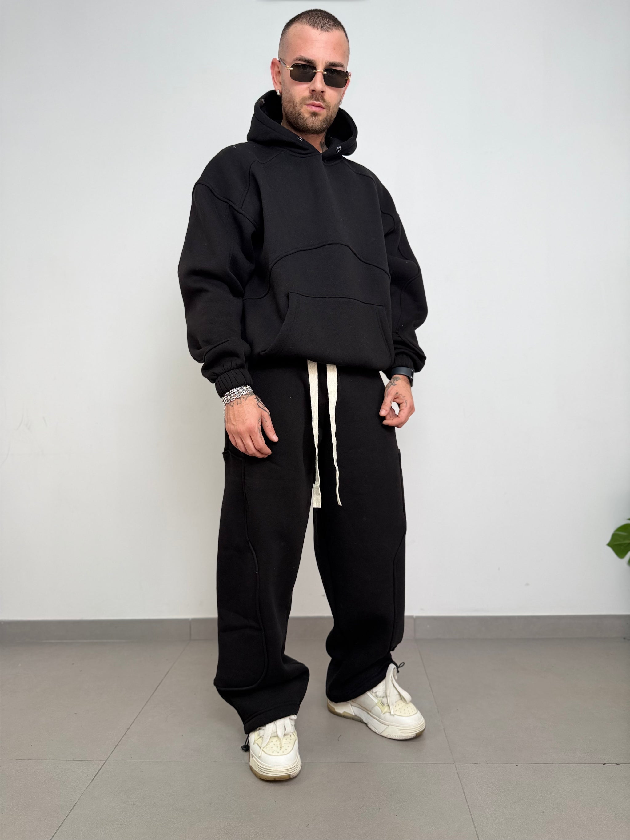 pantatuta con elastico e laccio in vita con cuciture esterne in rilievo