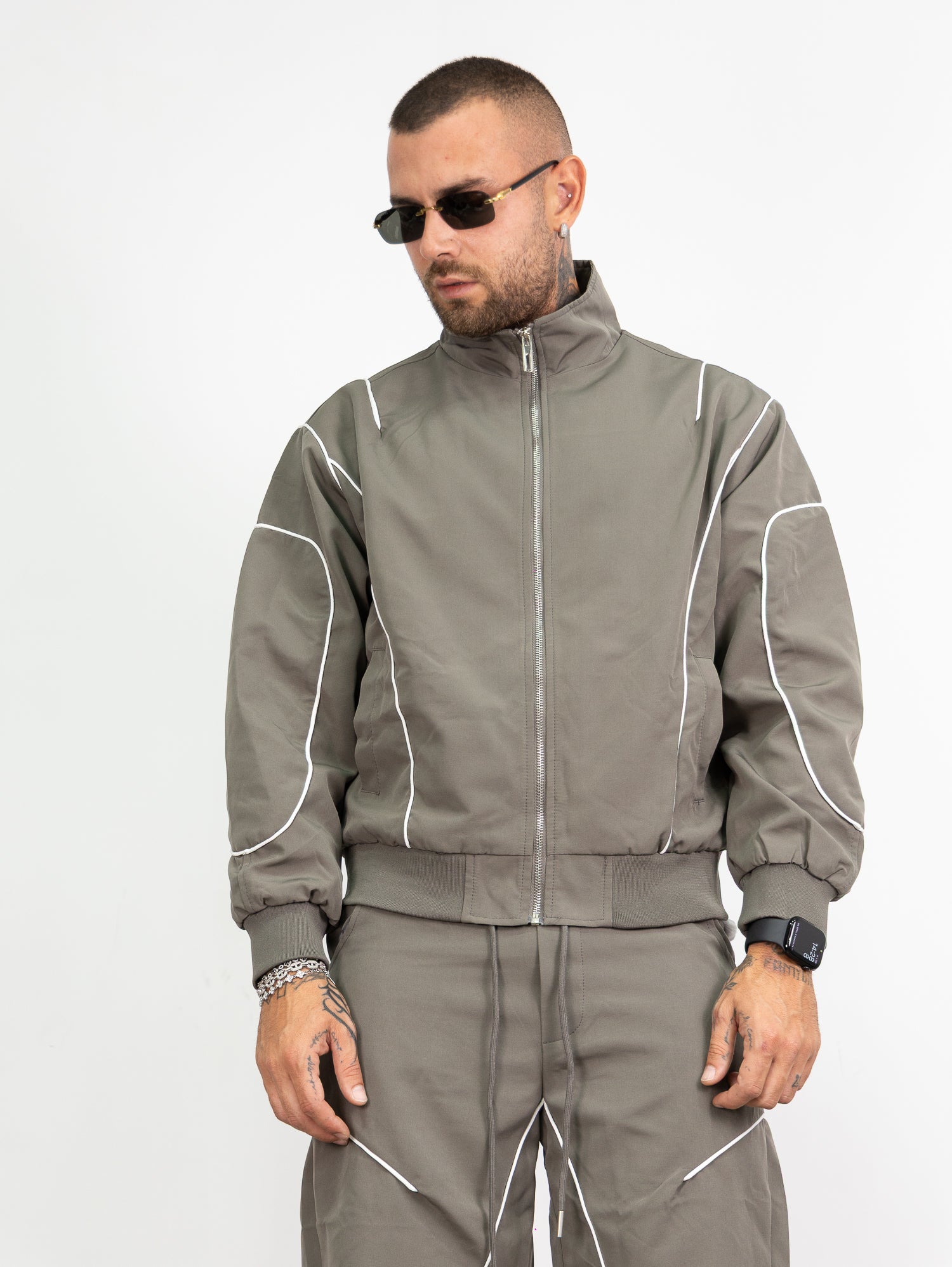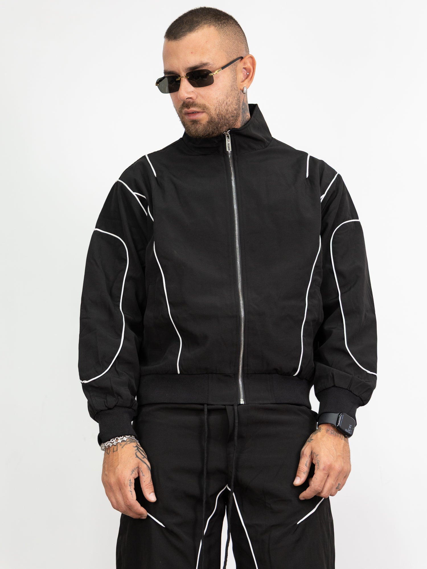 Jacket con zip frontale apribile,elastico sul fondo e sui polsi,dettagli a contrasto.