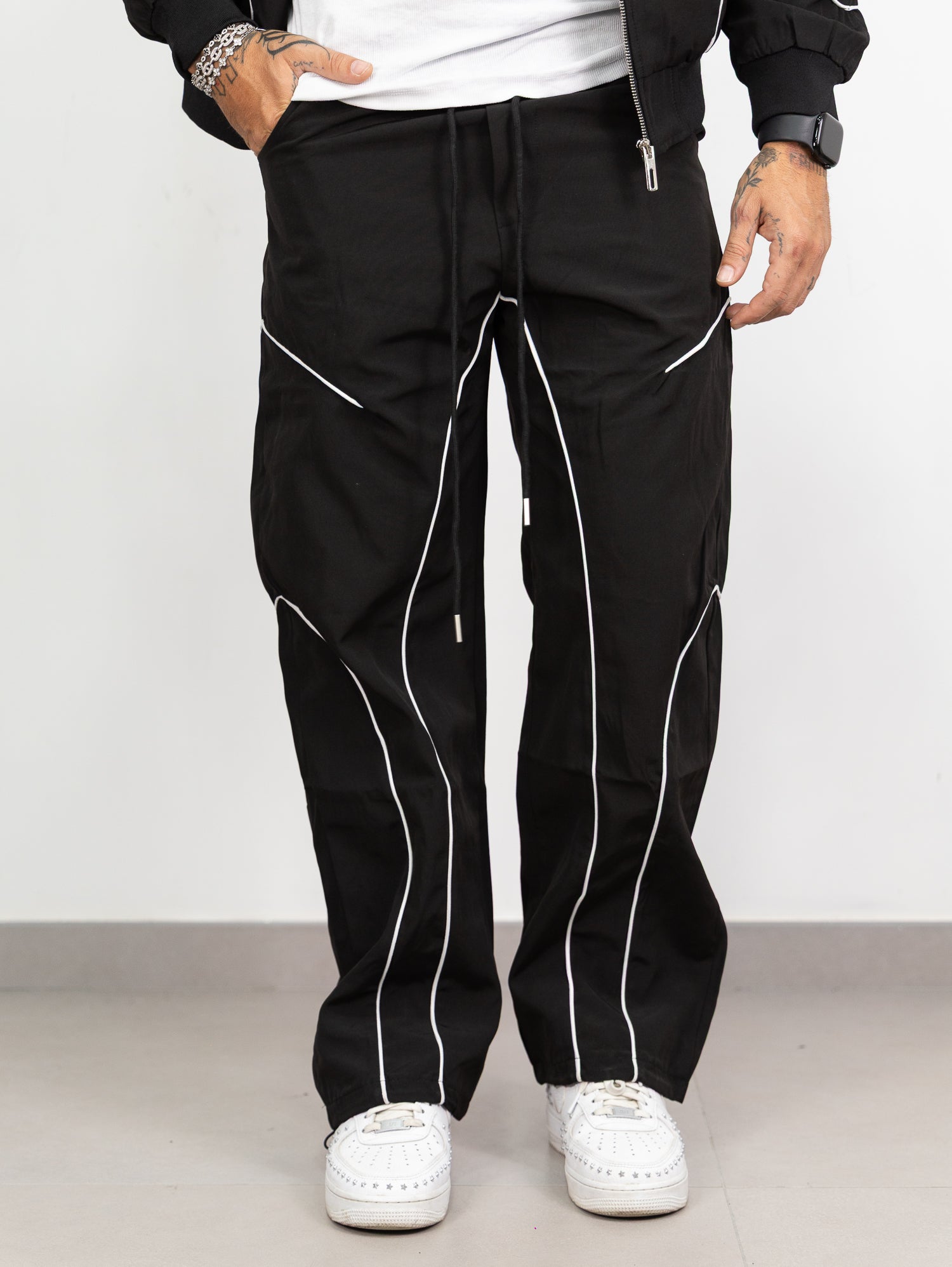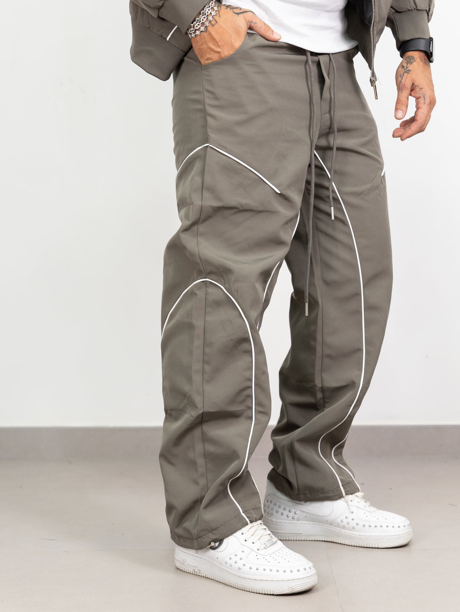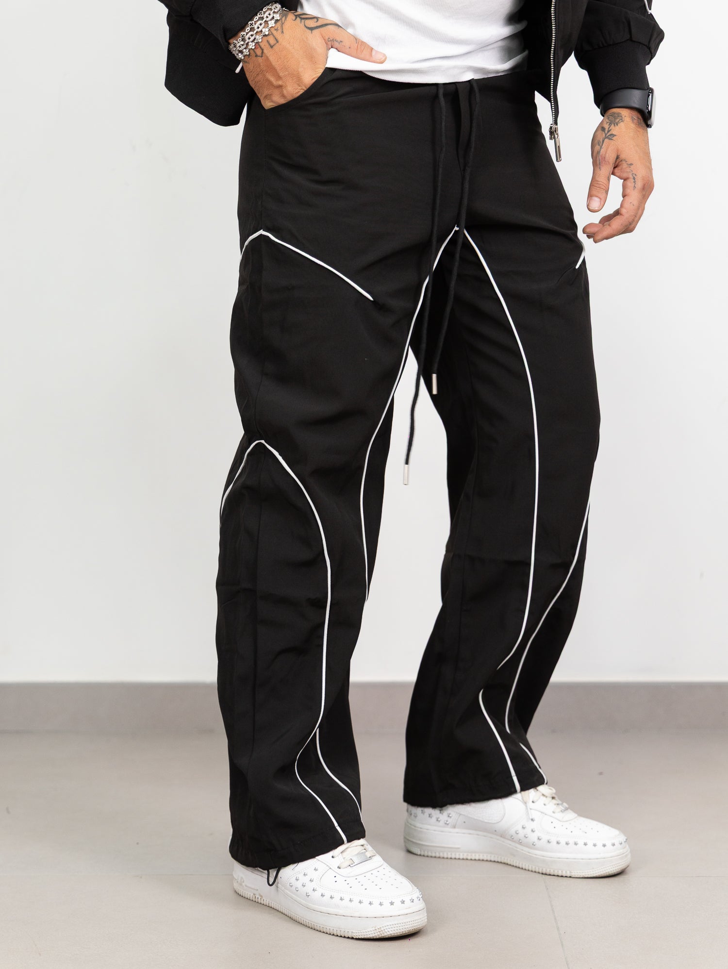 Pantalaccio con dettagli a contrasto,molla e laccio in vita e parachute sul fondo.